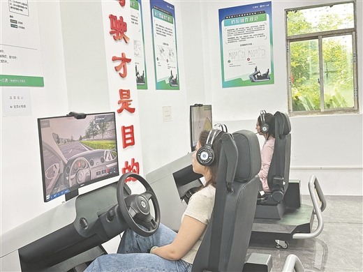 駕校學(xué)員正在使用機(jī)動(dòng)車(chē)培訓(xùn)智能模擬器練車(chē)。記者黃遠(yuǎn)來(lái)攝