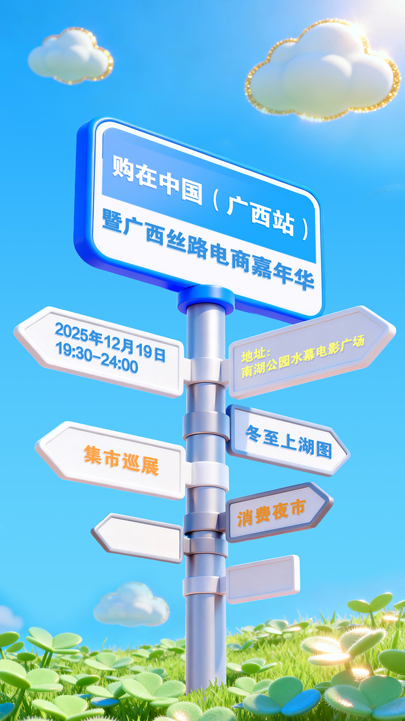 人民網(wǎng)南寧11月25日電 (馮肖慧)12月19日,“購在中國(廣西站)暨廣西絲路電商嘉年華”活動(dòng)將在南寧市南湖公園水幕電影廣場(chǎng)舉行。