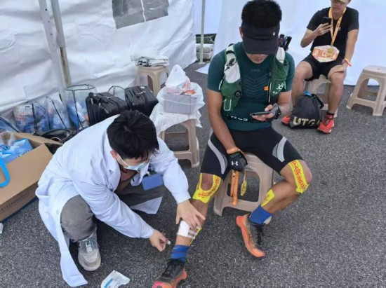 除了專業(yè)的醫(yī)療救助,保障團(tuán)隊更是選手們最堅實(shí)的后盾與最溫暖的依靠。在陡峭的爬坡點(diǎn)、在疲憊的深夜賽段,醫(yī)護(hù)人員一句句“加油”“注意安全”“需要幫助嗎”,給予了選手莫大的精神鼓舞。對于因傷退賽的選手,醫(yī)護(hù)人員始終耐心陪伴、悉心照料,直至將其安全移交,充分體現(xiàn)了對每一位參賽者生命安全和身體健康的高度尊重。