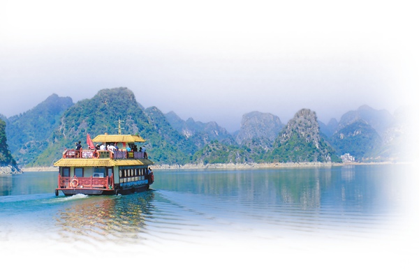 旅客乘船游覽上林縣西燕鎮(zhèn)大龍湖。(資料圖片)記者宋延康攝