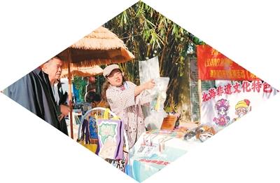 游客駐足北海非遺文化特色“老楊公”玩教具攤位。陳義超攝